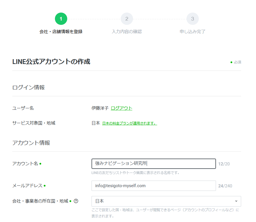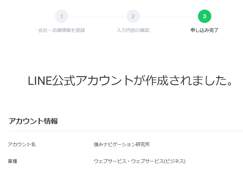 「LINE公式アカウントをはじめる」というページから、作成スタートします。