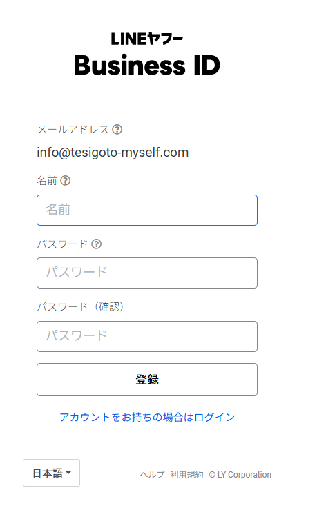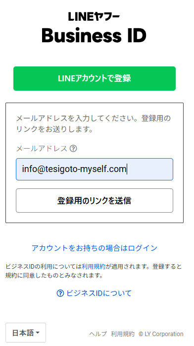 LINE公式アカウントを作るには、このLINEビジネスIDが必要です。
