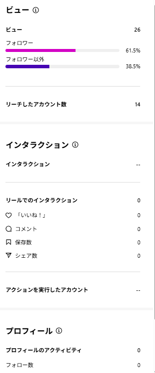 リールからあなたのプロフィールページを訪れた人数や、プロフィール経由でアクションした回数を表示します。