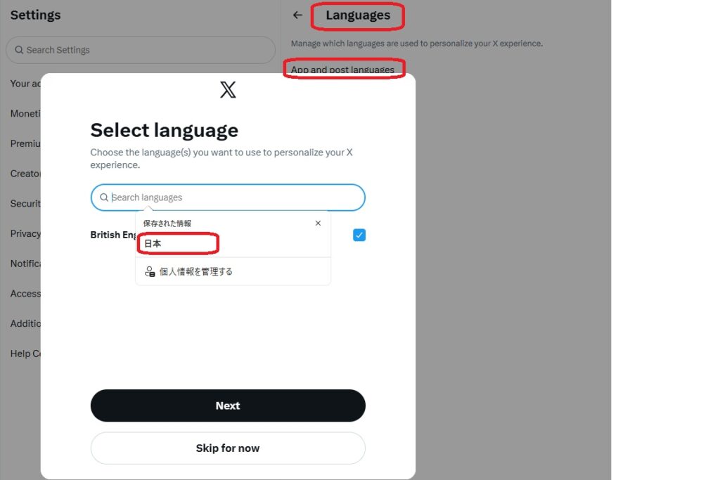 Xを開設したばかりの方は、英語表示になってしまって戸惑っている方も多いと思います。