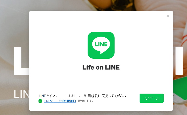 2.LINEヤフー共通利用規約に同意します。にチェックを入れて「インストール」をクリックします。