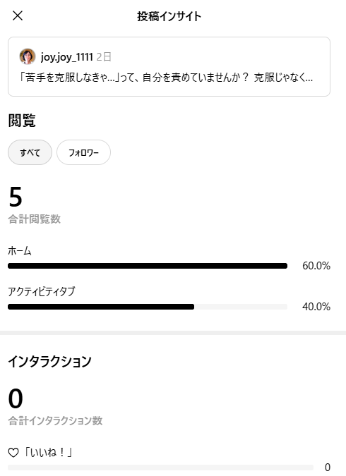 閲覧・動画再生数は多いものの、リアクションは控えめ。曜日や時間帯で変わるのかもしれません。フォロワー中心の接触が多い。