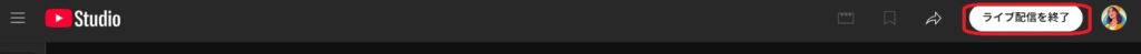 YouTube側の終了は、右上の「ライブ配信を終了」をクリックします。